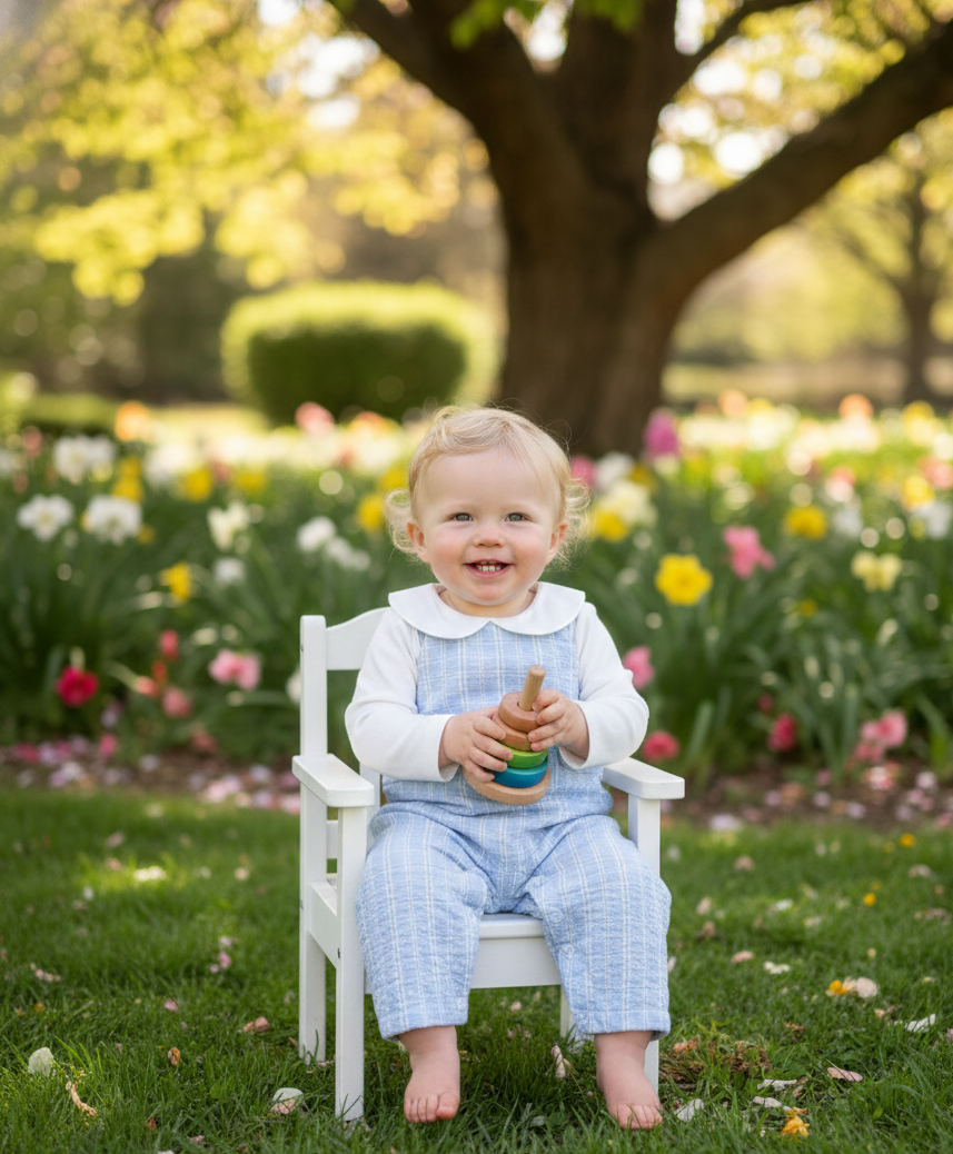 Step out in classic springtime style with the Buttons & Breeches Checkered Seersucker Overall Set, crafted from soft organic cotton for comfort and breathability. The set pairs a Peter Pan collar bodysuit with a three-button center-back placket and ring snaps at the bottom for easy diaper changes, with checkered seersucker overalls featuring decorative side buttons and concealed inseam snaps for effortless dressing. Perfect for sunny strolls, family photos, or everyday adventures, this set blends timeless charm with practical details.