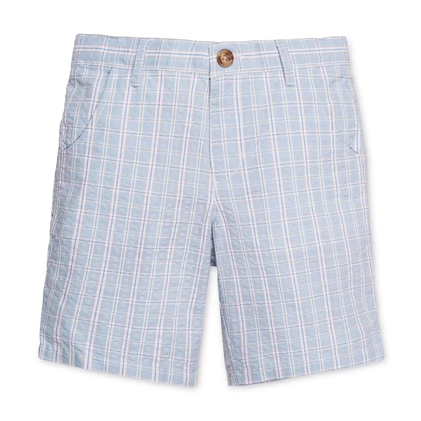 Polished, playful, and perfectly comfortable, our Little Gent Organic Cotton Seersucker Shorts are crafted from soft organic cotton seersucker with a modern fit that moves with him all day. Featuring a faux horn button, side and back welt pockets, and an adjustable waistband for a superior fit, these shorts are ideal for weekend adventures, special occasions, or everyday play. Timeless, durable, and effortlessly stylish—sure to be worn, loved, and passed down for years to come.
